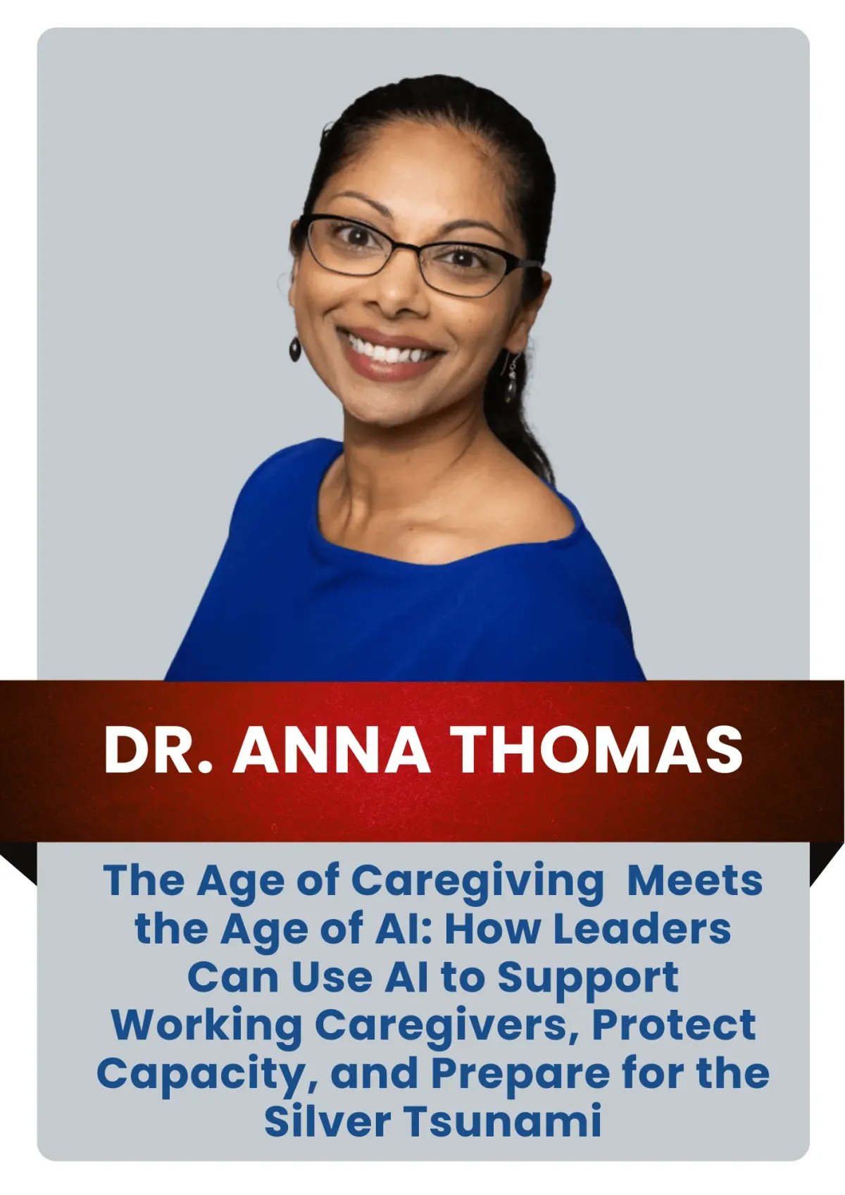 Dr. Anna Thomas is a board-certified palliative care physician, workplace wellbeing strategist, author, and AI for wellbeing consultant. Through her company, Workplaces That Care, She focuses on helping organizational leaders protect workforce capacity, improve retention, and support sustainable performance as work-life pressures, incluidng caregiving rise.